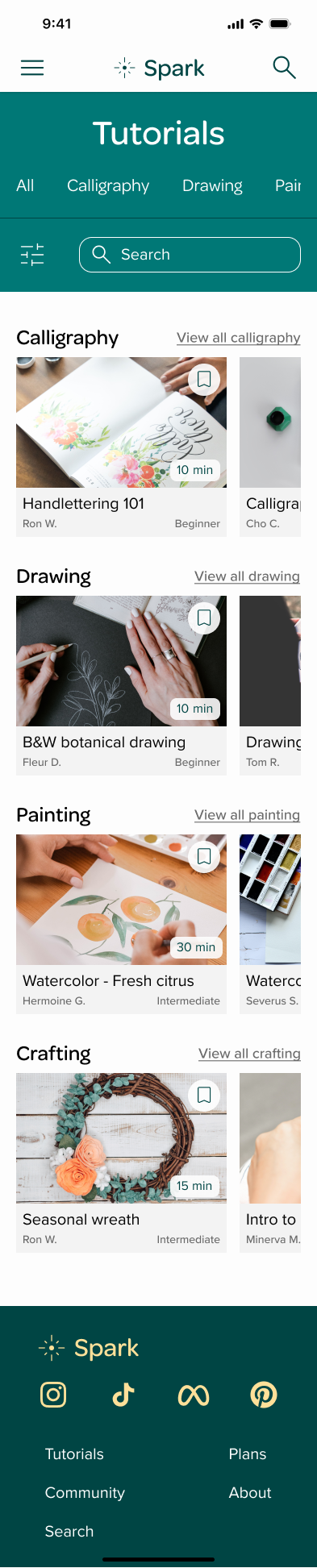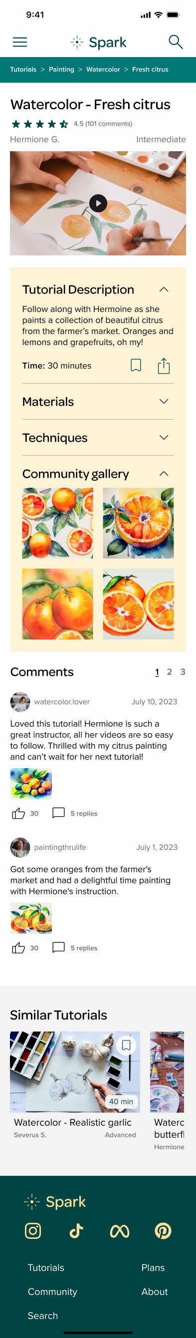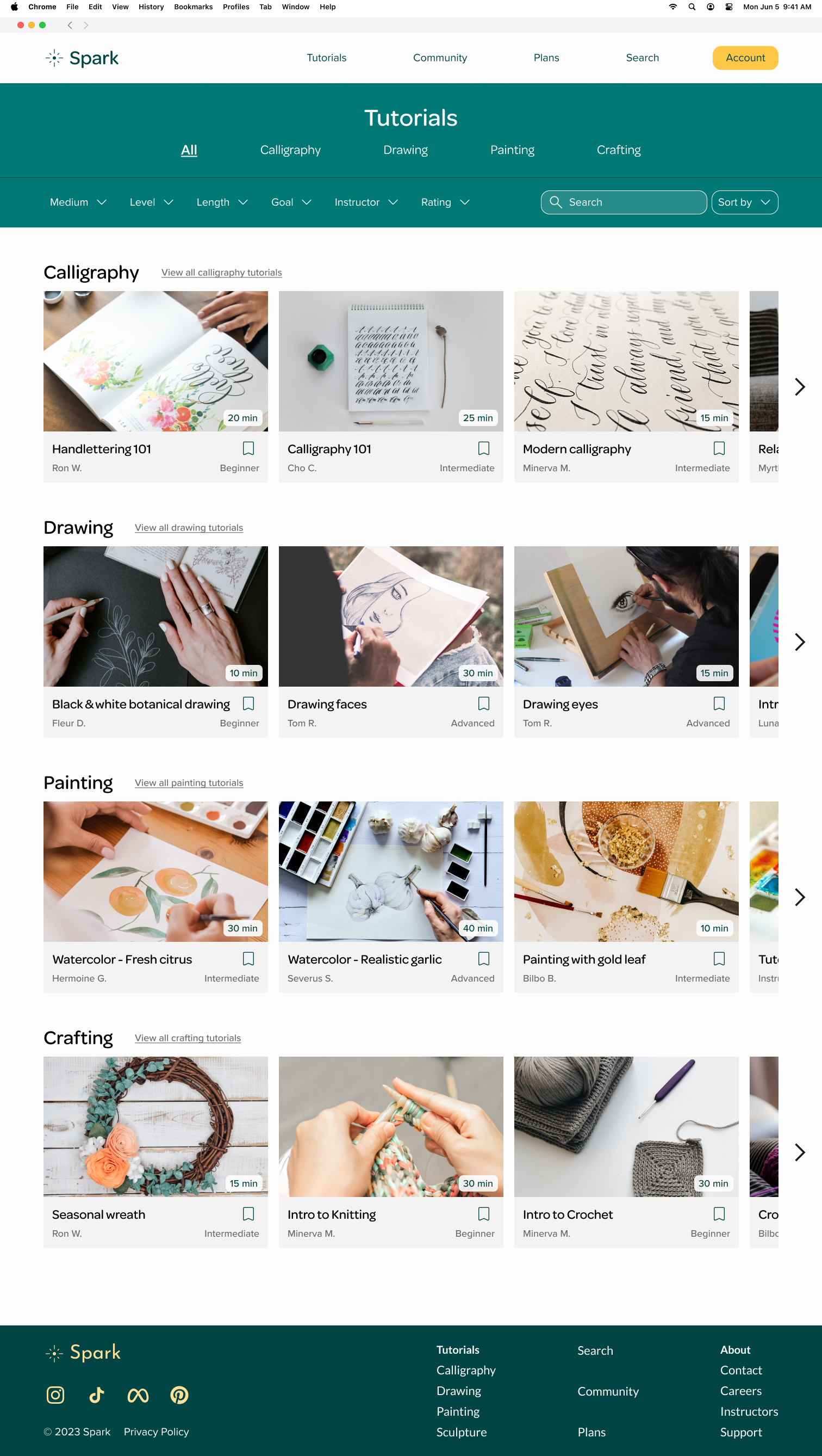 Spark is a website for creative people of all skill levels to follow along with art tutorials, learn new techniques, and engage with other creatives.